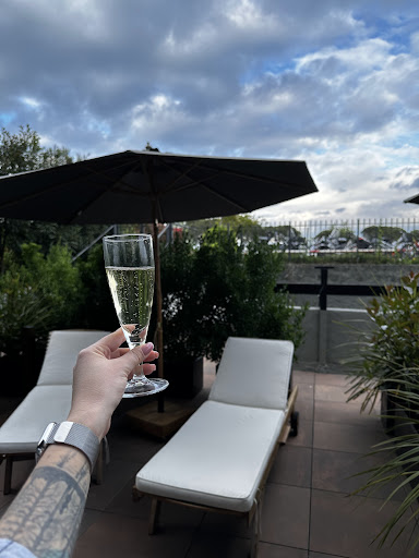 It has its own parking lot and also arranges airport transfers. We arrived by car, following the directions provided by mail. They share the building with another hotel and several stores. We used the parking speaker to call reception and Alex, the valet-bell boy-handyman came in a rush to help us with the luggage and park the car. ||Then, we were greeted by the administrator, who invited us to the garden with some snacks and prosecco. After the drink, the luggage wad already in the room. ||Our deluxe room was on the ground floor, and it was an average size, but with a large terrace, almost the same size as the room. It had nice garden furniture, but was separated from the neighbors just by some plants, so no much privacy.||The king size bed was very comfortable, felt like new. The Smart TV was huge (about 70 in) and the closet, small. The electronic panels by the bed controlled the lights and blackout curtain. The room had a teapot, and the espresso machine (and some snacks) were in the common area. The shower was large, but slippery. The decor was minimalist and clean. |They don’t have a restaurant, so they have an agreement with neighboring La Chiccheria to serve breakfast. We also received a coupon for a gelatto, made by...