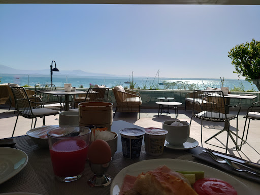 Das FrĂŒhstĂŒcksbuffet wird im Bar-Bereich angerichtet. Jedoch bleibt einem die Entscheidung frei, ob man sich im Innenbereich hinsetzen möchte, oder auf der wunderschönen Terrasse mit dem traumhaften Seeblick. Nach einem langen GesprĂ€ch mit der Inhaberin, haben wir noch ein paar Empfehlungen ausgesprochen, wie man das teilweise eintönige Angebot noch verbessern könnte. Wir denken, dass sich hier in den kommenden Wochen noch so einiges verĂ€ndern wird. FrĂŒhstĂŒckzeiten sind zwar offiziell von 7:30Uhr bis 10:00 Uhr angegeben, aber hier wird die Zeit nicht so eng genommen. Man bekommt auch nach 10:00Uhr noch genĂŒgend zu Essen.