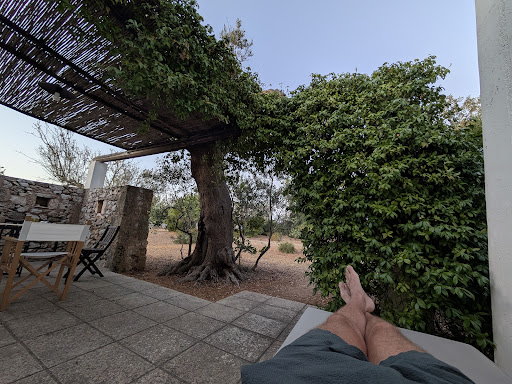 Read moreLocated in the hills overlooking Specchia, i Mulicchi is a small sized resort composed of app.10 villas, in the middle of olive trees and fig trees. Beautiful, peaceful, it is more of a romantic place than of a family-friendly place. Although villas sometimes encompass 2 rooms, we felt that we had total privacy and did not see much of our neighboors. The owners are absolutely nice, willing to go the extra mile for you (we asked for a pic nic on the last day and they went out for bread just for us...), and you can feel how much they love their place. Yet they are rather quiet, discreet and not pushy, which is striking in Italia :) ||Rooms are large, modern, well equipped, and there is air conditioning. Breakfast is great. The pool is nice, narrow but long enough to swim in, although a bit cold, and not as welcoming as it could be (add umbrellas, make it slightly cozier...maybe the location by the reception is not the best, but there's no easy fix there !)||||I've read complaints about it not being an actual resort. I don't know what defines a resort, i Mulicchi is clearly not an all-inclusive resort where you can expect to find food anytime anywhere and staff all over the place for you. But it is charming and I would recommend it to anyone wishing to explore the South Salento and at the same time stay in an authentic, well equipped place.||||Last but not least, a few words about the location. Specchia is a lovely city, with few tourists but a nice atmosphere, restaurants, and an amazing frantoio (ancient olive mill) that you must not miss (guided tours organized by the local pro loco). From Specchia you can radiate towards the West (Gallipolli and south), the South-East (Leuca, Tricase), and even the North-East (Otranto and its lovely coastline).||||We loved it and hope to...