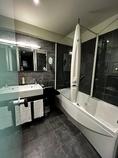 Our room was up to the standard of a Mecure hotel. Our bed was comfortable, and the room was well cleaned. The shower was hot with good water pressure, and basic toiletries were provided for. The light bulb of the table lamp on the writing desk was blown, and we called the Reception, which very promptly sent a maintenance staff to come and change it for us. That, to us, was efficient service, although it would have been better if Housekeeping had ensured that all amenities are working well in the room before guests were checked-in.