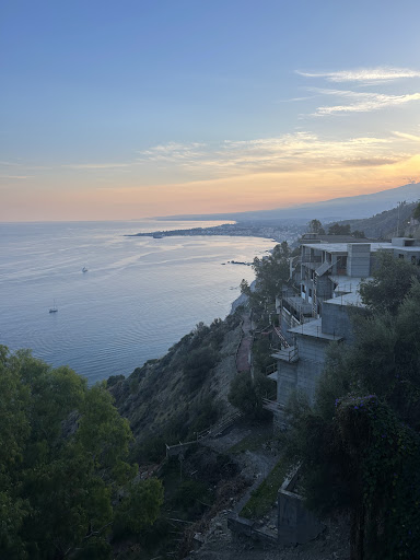 This was our first visit to Sicily and we booked at the last minute because we wanted some sun. We liked most aspects of the hotel but there were a couple of things that really jarred but other people might not mind them.|The reception staff were particularly helpful and so were the lovely staff at breakfast. Views from the dining-room were spectacular and there was a wide variety of food. It was a real treat to eat fresh peaches every day for breakfast and the glutenfree selection was very good. |Our room was spacious and had a large balcony too. It also had a bath which I always enjoy. So many modern hotels only have showers.|The pool area was very spacious. During our week's stay there was always plenty of choice of where to sit. However, we were disappointed that we couldn't easily have an umbrella each so that we could lie in the shade when there were so few beds in use and many umbrellas unused. When he grudgingly did give us a second umbrella, the pool attendant wanted it to look as if we weren't together. We also found it offensive that we couldn't have a drink at the pool restaurant and enjoy a view as that was reserved for people who were ordering food. While I am not blaming the staff for following orders and I can appreciate that these rules may be practical during busy times at the pool. such pettiness goes against the essence of hospitality when there are so few people eating and drinking in the restaurant as happened on several occasions this week. There is one very loud noisy waiter whose English is not very good. On the one day we did order lunch, he completely misunderstood our order. He hadn't bothered to check it carefully with us although we had had a conversation about the food wth him before deciding what to order. During the week he would also dump bottles of water in front of me and not open them so I had to go in search of him to do it for me if the caps were tight. |The one lunch we ate at the pool was fine. However, the pool restaurant is the only restaurant in the hotel and closes early afternoon and after that time there is no restaurant so the website is somewhat misleading.|We are older and walk a lot and live in a hilly area so we hadn't anticipated a problem with the slope that you have to climb up and down to reach the hotel. However, it was a problem when it was very hot. The temperature reached 33 degrees while we were there. If you have any kind of mobility issue, do consider this hotel carefully before booking if only from that point of view. If you don't like heights you should also check out photos of the outside lift as it is the only life taking guests to all floors.|We did think that the lighting could be improved on the hotel access slope to make it easier in the dark. There is a handrail next to the slope (not the stairs which are in the middle) but it doesn't go right to the top.|We also had a battle with the transfer company taking us to the airport when we left. They had been booked on our behalf by the travel agent. The driver didn't want to come down to the front door of the hotel. The hotel receptionist was very helpful in getting the matter resolved but it probably happens regularly. Eventually the driver left the car at the top of the slope, walked down and took our large cases up for us. We could not have done it ourselves. |Taormina is built in the side of a mountain so wherever you go, you are climbing up and down slopes and stairs. The town was very crowded and buzzing with life. Once you are at the top of the hotel slope, the location is very good. There are dozens of restaurants and beautiful shops and although it was very crowded, the atmosphere was lovely and very vibrant. But if steps and slopes are a problem for you, consider very carefully exactly where you plan to stay...