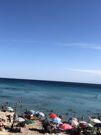 Read moreBit busy while we were there (beginning of September), mostly Italians. Small free sand Beach, free parking available, small place to have a drink cheaply, occasional loud jukebox, some grass and greenery but no real shade. Shallow easy water in a natural bay. Nice view except the larger paid beach/lido with a sea of blue umbrellas to the right...