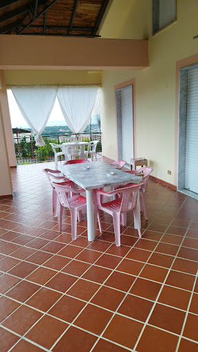 Ci sono due strutture, una lungo la strada ed una in collina. Noi eravamo collocati in collina (nella pace più assoluta). La struttura dispone di una casa costituita da 4 camere da letto con bagno, una cucina/soggiorno in comune e un grande terrazzo da condividere. L'auto può essere parcheggiata nel vialetto...