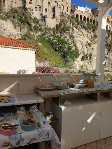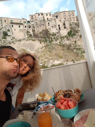 We arrived about 9am and knew we were far to early for check in but the lady said we could leave our bags in the room as she was half way through remaking and cleaning it. I had fallen on the road nearby and cut my leg and knee. She brought me antibacterial wipes and antiseptic alcohol so I could clean myself up, and an extra towel to wash the tears from my face!|She also brought us a bowl of fruit and a fruit juice each to welcome us which was lovely.|The room was great, apart from a part of the fridge door breaking and our bottle of wine dropped out and broke EVERYWHERE ! We are so sorry for messing up 2 towels and we emailed to apologise that evening! The next day it was spotless. |There is a Spar shop next to the most awesome pizza place 3-5 minute walk away in the marina. (Called Kalavri).|There’s also a closer supermarket just on the road but it looks a little dusty and so we preferred the spar. |There’s another restaurant on the corner called Vagabond or similar that was pretty laughable, a bit like fawlty towers. But the wine was €6 a litre and so we just had one each a giggled at the owner and the staff.|Tropea was delightful, do all the steps early in the morning so you don’t have to walk during the heat of the day. The beach to the east (past the spar shop about 10minutes) was nicer that the beach to the west. With a good cheap bar.|Also, the mammas gelateria at the top of the steps opposite the church on the hill was...