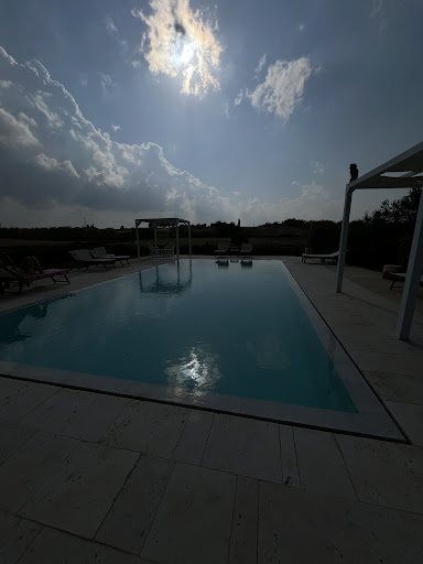 Read moreGefallen hat uns die Anlage insgesamt schon sehr gut. Der Pool liegt etwas erhöht, man sieht die ganze Umgebung.||Fabrizio hat uns für die Räder und den Fahrradträger Platz in einer Art Käfig gemacht. Das war sehr beruhigend. ||Gemäß Fabrizio ist die Gegend recht sicher.||Toll ist die Wäschleine hinter dem Haus. Wenn man etwas aufhängt, ist es durch Sonne und Wind schnell trocken.||Auch der sehr gut funktionierende Kühlschrank ist toll.||Die 3 Gazebos am Pool sind sehr dekorativ, geben Schatten, aber nur mit Lücken. Außerdem steht einer so, dass nachmittags die Pflanzen Schatten haben. Und unter zweien stehen Sitzmöbel. Wenn die Sitzmöbel weg wären oder weniger wären, könnte man die Gazebos besser nutzen. Zu wenig ist es trotzdem. Am 15. August (Feiertag) waren alle (6 Zimmer) am Pool. Da war es schon eng.||Die Zimmer haben den Ausgang alle direkt ins Freie.||Nicht gefallen hat uns folgendes: Man bekommt nur einen Schlüsselbund, der nicht trennbar ist. Also muss immer die Zimmertüre offen bleiben, wenn einer drin ist und die 2. Person außen. Die Türe hat nämlich keinen Griff draußen. Mit Griff außen wäre dieses Problem zumindest gelöst. ||Der Strom wird teilweise über einen kleinen Schlüssel (auch am Schlüsselbund) geregelt.|Wenn dieser außerhalb ist, geht keine Klimaanlage. So ist es nicht möglich während des Abendessens 2 Stunden das Zimmer zu kühlen und nachts ohne Klimaanlage zu schlafen. Es ist aber nicht sparsamer, ggf die ganze Nacht die Klimaanlage laufen lassen, statt 2-4 Stunden während des Abendessens.||Das ist für uns ein Grund, uns gegen die Anlage zu entscheiden. Wenn man ohne Klimaanlage schlafen möchte, geht das nur mit vorherigem Kühlen. Das akzeptiert Fabrizio nicht. In unserem Fall wollte mein Partner nicht mit Klimaanlage schlafen. Ich konnte wegen der Hitze dann aber gar nicht schlafen. |Hingegen funktioniert die Klimaanlage bei offenem Fenster und oder Türe (nach draußen). Das ergibt keinen Sinn.||Das Strom-Konzept ist nicht durchgängig. Das Licht im Bad und das Hauptlicht im Zimmer funktionieren ohne den kleinen Schlüssel.|Geräte laden am Nachttisch und im Bad wiederum geht nicht ohne den Schlüssel. Es sei denn man hat einen Verteiler für die Steckdose des Kühlschrankes. Der funktioniert immer.||Es gibt leider keinen Tresor im Zimmer. Der fehlt.||Das WLan im Haus ist schwach, auch die Reichweite. In Süditalien gibt es oft kein Netz. Daher wäre Wifi bis zum Pool wichtig.||Als verantwortungsbewusster Mensch möchte ich schon noch selbst entscheiden, ob ich zwei Stunden abends oder die ganze Nacht die Klimaanlage nutze oder...
