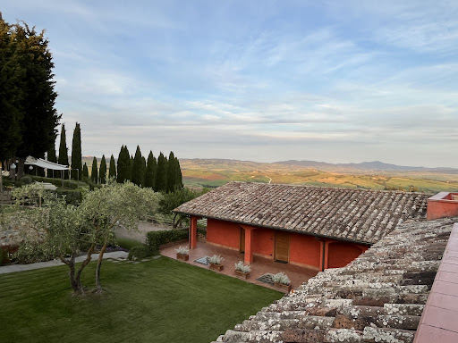 Read moreThe hotel is popular with photographic tours as its location is superb for views over the Tuscany rolling hills . There are a variety of rooms some have sunny patios , best at the back of the hotel . Our room was decorated in a period style twin beds , lovely soft linen & towels , whirlpool bath with shower , bidet too . A/c easy to use . Really clean. Safe & plenty of storage space . No tea making , although some rooms have a kitchenette, but no kettle. Good sized room . Yes maybe style is a bit dated but it is in keeping & I don't like modern concrete blocks of hotels . The heated indoor pool with water jets , free to guests is a real bonus in early May when the outdoor pool was too cold . The public areas are nice, there is a bar . The breakfast room is not lit by daylight and the continental breakfast is adequate , but no fresh orange juice , no fresh hot eggs , but has a toaster for the English . Lots of cakes & types of croissants but not freshly baked . Excellent coffee machine . The walled village of San Quirico d'Orcia is a 7 min stroll . Lots of restaurants & old narrow streets to explore with a central main street & square by the church . Reception staff will...