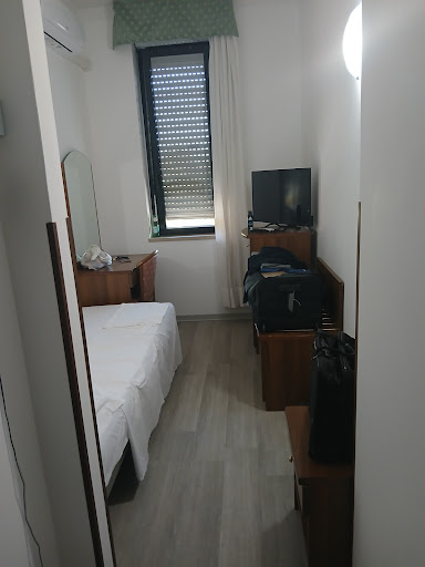Una bruttissima esperienza da dimenticare. Abbiamo soggiornato una sola notte: l' 11 giugno 2022. L' ascensore all' arrivo funzionava, quindi abbiamo portato le valige in camera al secondo piano, al rientro da un evento ( circa l' 1 30 di notte ) abbiamo trovato il portone chiuso, abbiamo suonato e ci hanno aperto degli uomini ( credo rumeni ). Dopo si è anche affacciata una donna di una certa età, la stessa che ci aveva accolto alla reception dicendo che l' ascensore era rotto ( strano, dopo poche ore dal nostro arrivo ). Comunque andiamo in camera, qua si dorme poco perché quegli uomini rumeni hanno urlato fin verso le 3 di notte nel cortile dell' albergo ( proprio sotto alla nostra camera ). Ci alziamo la mattina e andiamo nella saletta colazione ( per modo di dire ): un cornetto a testa, un cappuccino ed 1 bicchiere di succo. Stop. Scendiamo dal secondo piano a piedi ( ascensore sempre rotto ). Al momento di pagare ( 80 euro per una serie di disservizi ), nessuno sconto per tutti i disagi, chiediamo la fattura e la signora dice che la macchinetta è rotta e che ce l' avrebbe inviata ( neanche l' ombra ).Usciamo per andar via con rabbia e malumore e troviamo tutti gli uomini nel cortile d' uscita. Io penso che l' albergo sia gestito da rumeni. Altre persone ci hanno detto che l' albergo era stato fatto chiudere e poi è stato riaperto. Un consiglio: non andateci... Dimenticavo: la signora di una certa età era anche sgarbata. Spero che l' albergo chiuda nuovamente e che ad altri non capiti un' esperienza del genere. Ci sentiamo truffati in pieno e non voglio aggiungere altro. Bisognerebbe segnalare...