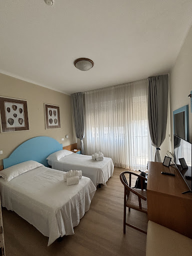 Posizione buona, vicino alla spiaggia e al viale per passeggiate, negozi e ristoranti sono praticamente 5 minuti a piedi. Ragazze della reception molto gentili e anche i ragazzi in sala la sera. Camera molto piccola, si sentiva tutto la notte anche quando qualcuno accanto russava, doccia rotta lo sportello ci è caduto molte volte e non si chiudeva! usciva sempre tutta l acqua, non c’era nulla per appoggiare le cose in bagno e in doccia. Cena alle ore 20.00, attesa molto lunga se non prendevi l antipasto per il primo piatto aspettavi 40minuti. Per finire tutta la cena ci voleva un ora e mezza, sconsigliato se si viaggia con bambini piccoli! Per far arrivare prima il piatto a mio figlio di 3anni dovevo sempre chiedere. Menù a scelta tra due antipasti, tre primi, tre secondi e dolce o frutta. Per mio figlio ho chiesto se fosse possibile un menù diverso e mi è stato proposta la pasta con sugo a scelta, una sera ho chiesto un risotto ma era possible solo riso in bianco perché il risotto era troppo “complicato”, ho chiesto se fosse possibile una cotoletta per lui ma ti portano le cotolette quelle surgelate non fresche. Colazione dalle 7alle 10, ma attenzione se arrivate alle 9 le cose calde tipo uova, bacon, pancake sono già finite e ogni volta bisognava chiedere al personale se fosse possibile avere qualcosa che fosse già finito. Succhi e caffè da macchinetta, meglio non berli! Penso che se una colazione dura fino alle 10 dovrebbe esserci tutto fino a quell’ora lì. Personale della colazione scortese. Pulizia della camera discreta e bicchieri in sala sempre sporchi! Servizio spiaggia prenotato tramite hotel 20€ al giorno per ombrellone e 2 sdraio, richiesto pagamento extra per un lettino. Ma una volta arrivati allo stabilimento abbiamo visto che il prezzo era 12€ al giorno e festivi 15€ al giorno per ombrellone e sdraio. Ombrellone sdraio e lettino presso lo stabilimento andava a 15€ e festivi 18€ al giorno, una fregatura anche qui. Non lo consiglio a nessuno, prezzi comunque elevati ma non si riceve il servizio adeguato anzi l’ultima sera siamo stati...