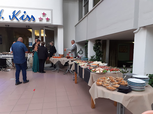 Hotel Kiss is situated in a quiet cul de sac 5 minutes walk to a blue flag safe beach. The hotel is run by charming Scarlett and her husband Daniel who made very welcome when we arrived, we were given a 3 bed room on the top floor very spacious, the bathroom modern but a little small, likewise the balcony. We stayed half board and we really enjoyed the food, you choose off the menu for the next day. We liked that the owners ate very night in the restaurant and one night the celebrated a family birthday there as well. Free water and the wine was good and ranged from 7euros up to 12, very reasonable. Daniel sorted a bike for me as I am on the short size so I could cycle through the pine forest, this was really nice as it was the first time I had been on a bike after suffering a stroke.All the staff were very friendly from the restaurant to the cleaners. There is wifi in the public lounge area. Lot of original art work through out the hotel.There are a few small shops nearbye and one night there was a street market.We walked along the flat bech to Cesenatico 30 mins stroll and came back along the road very easy, everybody seemed to have bikes as it is so flat. A great family hotel in a lovely area near to Ravenna and beautiful countryside.Would definately return. Sorry this is a...