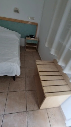 Read moreVerrebbe facile scrivere benvenuti all'hotel Fantozzi, ma non ricalcherebbe la realtà che è ancora peggio. Prenotato una matrimoniale, comunicato che avrei portato un cane come previsto, quando siamo arrivati ci è stata data una stanza a piano terra nel giardino in una posizione terribile, con muro davanti, deposito materiale di pulizia di fianco e serbatoi dell'acqua. Non abbiamo voluto polemizzare subito perché eravamo stanchi, avevano preso tre notti di ritorno da altri posti e siamo andati in spiaggia, gentili i ragazzi che ci lavorano, lettini e sdraio risalenti ad almeno 15 anni, docce a pagamento ma in un piazzale lurido, e la chicca, il bagno, una scena da horror, non allego le foto per non disturbare. Ok, andiamo a "cena" dove ci servono un primo agghiacciante, fusilli alla carbonara sicuramente riscaldati più volte, e fusilli al sugo, anche questi terribili, i secondi fatti in economia e di scarsa porzionatura, e quando andiamo al "buffet della frutta" che troviamo? Anguria anguria anguria 🍉😝 il dormiente che serviva non riusciva a ricordare dove portare i piatti e questo la dice lunga. La stanza, pulita bene, ma chiaramente in disuso, con odore di muffa nell'armadio, per 4 persone, ma se qualcuno si fosse accomodato sul letto in foto, voilà ecco che bei pezzi di tubo che sporgono dal muro. Aria condizionata che dalle 6 alle 17 circa funzionava decentemente, dopo quell' orario diventava inutile, il ventilatore a soffitto avevo paura di metterlo se non al minimo perché poteva staccarsi, insomma davvero un posto terribile. Mi hanno detto delle persone che le stanze come la nostra sono date tipo pensione o colonia estiva, e che si meravigliavano che ci avessero dato quella camera. Comunque, il mattino dopo, l'area colazione era eccellente, ben servita, molto assortita, e ben pulita. Purtroppo dopo la giornata, tornati nel girone del ristorante, abbiamo notato che la frutta veniva presa d'assalto, e che molti contorni erano gli stessi del giorno prima, i primi erano egualmente terribili, i secondi accettabili. A quel punto, fatte due tre telefonate, abbiamo trovato altro e siamo andati via il mattino successivo, dopo la colazione. Personale al banco stanco ma professionale, pulizie buone, staff area colazioni...