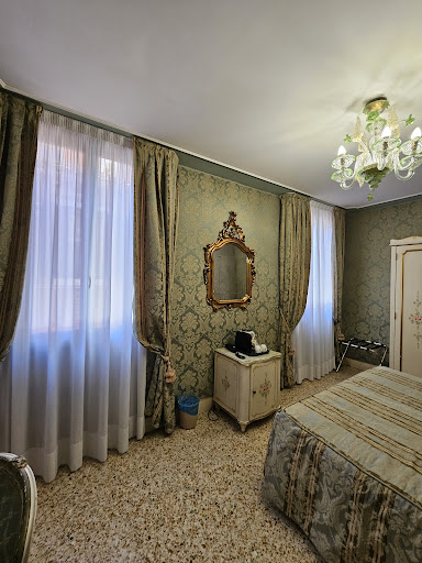 I made this reservation at the airport, just one hour prior to arriving in Venice. I was a concerned about my selection as I approached the building, having left the crowds about two blocks prior. The front looks almost abandoned, until you look upwards, past the shabby doors on the street level. VERY NICE!! I felt welcome upon arrival, and was shown to my upgraded room, since the room I had booked was not available. A wonderful surprise! The room was quite large, and the bathroom was HEAVENLY. Jacuzzi tub, beautiful Italian tile, a separate rain shower. The windows had beautiful drapes in typical Venetian style, andwindows that were easy to open, to take in the ambience of the Grand Canal. Since I was traveling solo, I did close the shutters on the outside, and pulled the drapes closed at night, but felt silly when I awoke the next morning to find a lovely neighborhood already waking up and starting to prepare for the tourists to arrive at the boat docks. There was a computer available for loan in the room, but I did not use it. I did print a voucher from my mobile device, and to my surprise, when Iarrived in the morning for breakfast, the front desk gentleman handed me my print-out! The water taxi departs from close enough to walk in minutes, but not so close that people will be right outside your window waiting for it. I had dinner just two blocks toward the water taxis. I can't remember the last time I felt so relaxed and comfortable, especially while traveling without my husband or our dog! I could go on an on. Just book the hotel if you're lucky enough to find a room. There are only 9...