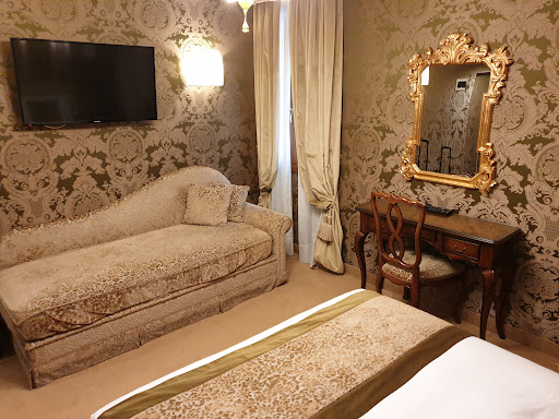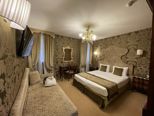 Read moreLast minute booking when our flight was cancelled and we needed to find somewhere fast. Very centrally located small hotel tucked away right in the middle of the designer shopping area. Rooms are Venice themed with brocade headboards and marble bathrooms. The hotel was last refurbished 15 years ago so it is dated but doesn’t look worn and is very clean. We accidentally booked our rooms twice as we booked when we were in the airport at Pisa, thought the first booking hadn’t gone through due to poor connection on the wifi so booked again. We the had booked four rooms when we only needed two. So immediately called the hotel who refused to cancel the extra two rooms. We’d got a deal and were in a panic so didn’t have any energy to argue. It was our fault, the hotel could have cancelled it as a goodwill gesture but chose not to. They told us when we arrived we could have a suite as one of the rooms. We agreed thinking it would be better than the three other rooms we’d already looked at! This “suite” turned out to be exactly the same as the other standard rooms. Maybe a slightly larger bathroom? Not a suite anyway as there was no sitting area whatsoever and very tricky to get to on the fifth floor as the last floor can only be reached by steep stairs which wasn’t easy carrying a heavy case. So bear that in mind. The suites are not suites! |Breakfast is not great. Staff were nice though and were pretty surprised and displeased when we told them the story of the extra two rooms that no one had slept in! Hot food was scrambled egg, bacon and some vegetable mix that was not very warm. Hardly any fruit or yoghurt options but nice homemade cakes and self serve coffee machine that was pretty good. Overall a fairly comfortable stay in a clean hotel but the feeling of being ripped off wasn’t very nice. Wouldn’t stay again for...