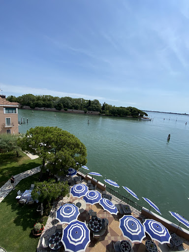 Beautiful hotel and grounds. Rooms are large and generally with great views of the water. The hotel is located on an island that is about a 15 min boat ride to St Marks square. The hotel has a free shuttle boat that runs continoulsy between the hotel and the square which is very convienent. There were only 2 negatives: first is the table service at the restaurants is slow. We went to breakfast at 840am an we had a 930 water Taxi reservation. They have a breakfast buffet except you have to order eggs from the waiter. We did that right away even before we sat down at our table. Twenty-five minutes later we flagged the waiter and told him we 15 minutes before our water Taxi appointment. 7 minutes later we again reminded the waiter we now had 8 mintues before we had to leave. The eggs finally showed up at 9:27. We had 2 minutes eat our breakfast. The waiter mumbled something about the kitchen being busy but we watched others come, be seated, get their order, finish their breakfast, and leave while we waited for our egg order. Just be forewarned, if you are on a tight schedule, allow time for the poor table service.