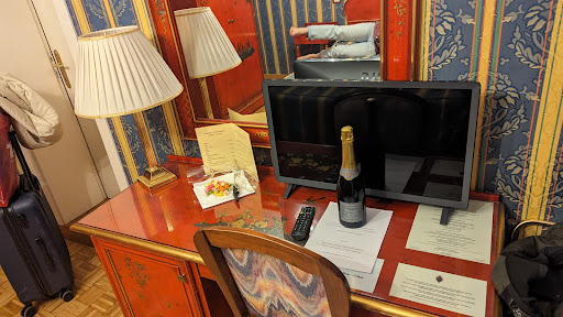 Lovely hotel located on a canal. The location is an easy walk from the train station, and you don't have to drag your luggage accross any bridges or up and down stairs to get there, which is rare in Venice. There is a lively bar, a good pizza and seafood restaurant, and a great crepe place just around the corner, and vaporetto stops nearby in either direction. The hotel has three floors of guest rooms, each of which has a different name. We stayed on the top floor, which is called "Le Mansarde", and used to be the servant's quarters. While this floor has smaller windows, it has the advantage of being above the surrounding buildings so your view is of the Venice skyline, not a wall, if you're not in one of the suites facing the canal. The rooms on the top floor also have skylights.