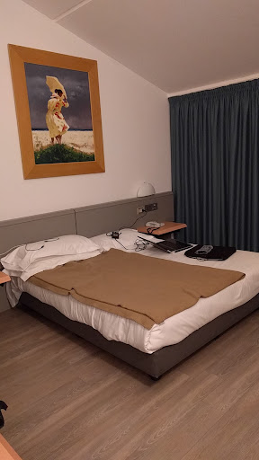Read moreNous avons fait une étape dans cet hôtel qui promettait, d'après les photos et les avis, être un bon hôtel étape avec un petit déjeuner copieux. Si vous aussi vous cherchez la même chose que nous je vous conseille de tourner les talons et de fuir cet hôtel ! Quand vous arrivez vous êtes accueilli dans une jolie salle avec à l'arrière de jolies tables qui semblent déjà dressées pour le petit déjeuner du lendemain, pour l'instant tout va bien on nous donne la clef pour la chambre supérieur que nous avons réservée ( la 129 ) nous avons une petite place devant la chambre pour garer notre voiture. Nous garons donc la voiture sur une petite place devant une chambre style année 80 ( tiens sur les photos ça paraissait plus moderne ... ) mais bon nous ne nous fions pas aux apparences nous ouvrons la porte de notre chambre " supérieur "; et là , surprise nous sommes dans une chambre qui ne ressemble en rien aux photos. Une chambre vieille sale avec comme comité d'accueil une belle et grosse araignée au dessus du lit ( et pas celles discrètes avec les pattes toutes fines ) une salle de bain très très loin des photos, également vieille et sale avec une douche italienne aux vitres qui ne sont pas étanches ( très pratique ! en 2 min le sol de la salle de bain est entièrement recouvert d'eau ) un lit de basse qualité ( et deux oreillers pas plus nous sommes seulement dans une chambre " supérieur " ). Bon la chambre c'est raté nous nous endormons tant bien que mal avec le doux bruit des avions de l'aéroport d'à côté en rêvant de notre super petit déjeuner ( voir les photos sur tripadvisor ou booking ) du lendemain. Le lendemain nous allons donc dans cette jolie salle pour le petit déjeuner là on nous dit " mais nous avons placé le petit déjeuner ailleurs " on nous emmène donc dans un sous sol avec une salle raccord à la chambre un petit déjeuner extra bas de gamme avec quelques produits premier prix pas de jus d'orange et un chocolat chaud au goût de café... Enfin bref un vrai fiasco, je vous conseille donc de ne pas faire comme nous ne vous fiez pas aux photos et fuyez cet endroit car même pour le prix ( 56€ la chambre ) c'est encore...