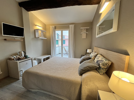 The room itself was really nice -- very clean and modern, and indeed even nicer than it looks in the pictures! The bed was very comfortable, the WiFi, TV, AC all worked great, and the bathroom was well-designed and well-equipped. Our room also included a cute terrace with a table and chairs overlooking Vernazza's main street as well as some of the hills just beyond the town.
