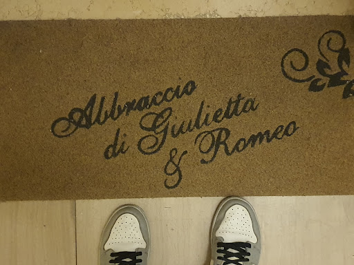Read moreCome da titolo, siamo rimasti davvero piacevolmente colpiti dalla sistemazione trovata per questo nostro week end veronese.||Tanti i punti a favore per scegliere l’abbraccio di Romeo. Potremmo partire dalla location, perfettamente posizionata a 10 minuti a piedi dalla stazione Porta Nuova e immediatamente nelle vicinanze (5 minuti a voler esagerare) da Castelvecchio. Ma possiamo dire, anche grazie alle dimensioni contenute della città, che da qui avete tranquillamente tutta Verona a portata di…piede.||Altro punto a favore…è la meticolosità e la cura dei particolari che la proprietaria ha avuto nell’arredare questo mini appartamento in modo da renderlo accogliente e romantico e perfettamente adattato alla realtà scaligera che ci aspetta fuori. Guardaroba vintage a baule molto carino posto all’ingresso, letto a baldacchino, comodissimo e accogliente, un bel cassettone, biancheria soffice e profumata, libri di poesie romantiche, guestbook per gli ospiti, soffitto in legno, cioccolatini e confezione di dolci di benvenuto…insomma siamo rimasti colpiti da questa accoglienza.||L’appartamentino e a livello strada, piccolino ma, come detto, dotato di tutto anche per la colazione da fare in casa, stile bar con sgabelli su un bancone con un muro a lavagna dove poter lasciare la propria dedica e delle belle tovagliette con stampate le mappe della Verona antica. C’è un frigorifero dove trovare latte, acqua, confezioni di prosciutto o formaggio, succhi e altro. Poi merendine, mono confezioni di Nutella e marmellata, l’occorrente per il te, la cioccolata calda, il nespresso…pure un forno a microonde, e la dispensa con tazze e tazzine, posate, bicchieri e così via.||Se si vuol passare tempo troviamo ancora dei giochi (dama, carte da buraco, giochi orientali).||Il bagno si chiude con una porta scorrevole e, considerato il contesto del piccolo appartamento, è spazioso e con una gran bella doccia ed anch’esso da l’idea del buon gusto della proprietaria.||Internet disponibile e perfettamente funzionante, presente TV schermo piatto ma mai usata, phon, coperte supplementari…insomma a me pare che ci siano tutti i presupposti per rimanere oltremodo soddisfatti e in caso di nuova visita nella città scaligera questa sarà senz’altro la nostra prima opzione, magari per provare anche gli altri...