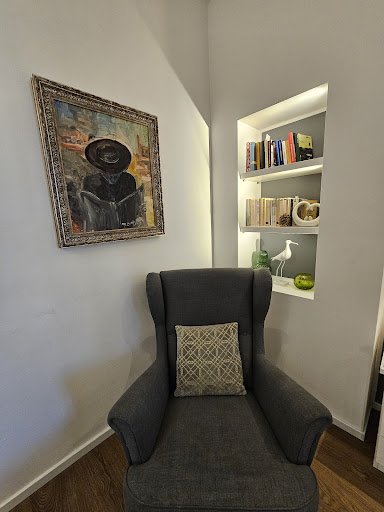 We had a pleasant stay here. To find it, look for a tan colored building with an unassuming entrance. The doorway is next to the "La Contadina" mozzarella shop. Arena Suites is located on the second floor- you'll buzz in through the door intercom and then take the elevator up. Once you're inside the Arena Suites main door, there is an "L" shaped hallway with the individual suites inside. We were in the TOSCA SUITE, which was spacious, clean and modern. It had all the amenities one would expect- small bottles of toiletries were provided and the shower was hot and had good water pressure. In the main room there was a desk, slippers, coffee/tea and some tasty packaged biscuits (cookies) for the a.m., a small safe, mini fridge and a closet. There was also a popcorn machine but we did not try it out.