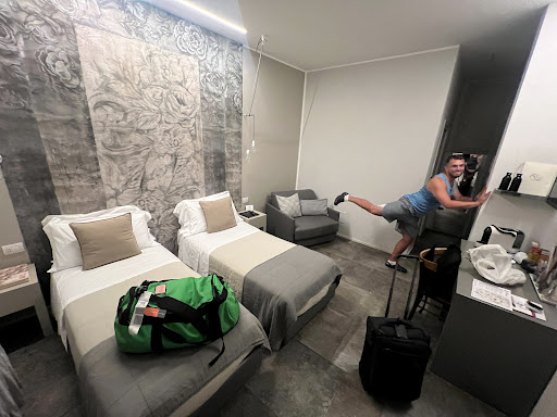Read moreThe room was exactly as pictured - clean with Wi-Fi and coffee maker in room. It had a surprising amount of closet space and two TVs! There was also a safe and a desk.||Their own branded products of soaps are provided in dispensers. I do not recall if they provided conditioner. ||Like most places that we stayed in Italy, there was no English TV - bring your Firestick or Roku. ||The bed was comfortable, but the sheets were rough. ||If you're not on the ground floor, you will have to climb stairs.||Note: The front desk is operated part-time and there are no amenities other than what's in you room. We had no problem getting a fee parking space right in front of the hotel.||The management was very responsive to emails and the woman working the front desk was nice...