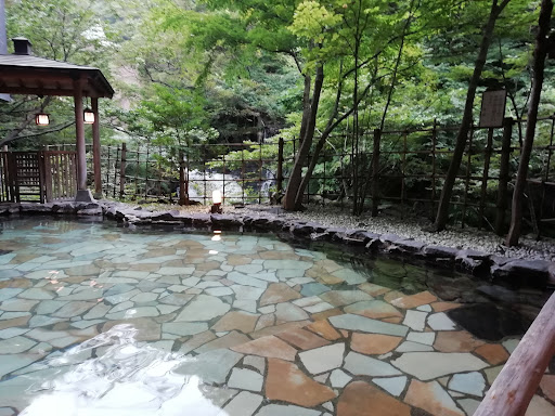 Read moreThis is a ryokan with a modern twist. It has all the lovely things that characterize the ryokan life: traditional tatami room, beautiful view, a full tea setup, ukata and slippers, staff who silently set everything up. The room has a few more amenities not usually offered: mini refrigerator with a pitcher of cold water, lots of glasses. ||||Sometimes I find dining in your room too restrictive. There modern twist is to have you dine in their restaurant. You get a beautiful set of appetizers that are mostly traditional and then you choose what ever you want from their buffet. They have fabulous food!||||What sets ryokans apart from hotels is the service, really excellent service. Their staff were so polite and helpful. ||||The onsen is wonderful. They provide everything you need and it is twenty-four hour access. My mother-in-law nearly stayed there all night! If you feel shy about bathing in public or you want to be with your significant other, you can rent a private bath. They have several to choose from including a family room with a large dressing room/vanity area. ||||Additionally, your room will look out on a steep mountain gorge with waterfalls and a river. It is just gorgeous...