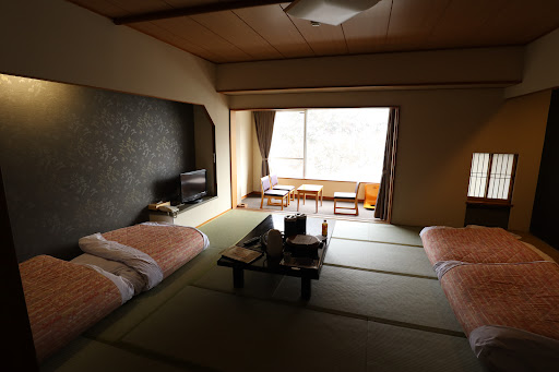 Read moreAs a group of 5 we stayed in a Japanese style tatami room for one night on a recent visit to the region. Whilst the room was lovely and overlooked greenery and the bathroom was fairly spacious for a Japanese room, the hotel was failry tired and looked it from the externals. Also the location being about 2 kilometers and a half away from the old tired hot spring area was a little inconvenient. This hotel was fashionable in post war era, and now tends to cater for the elderly generation for reunions etc., which is in itself a wonderful experience. The onsen hotspring in the hotel is an experience in this environment. However, I thought the hotel was pricey for what it offered as many Japanese accomodations in the region tend to only have meal package and hotel deals which turns out to be costly when travelling in a group. There were other hotels within the small town which would offer a more traditional traditonal feel and conveniences. One negative aspect of the rooms was the heating/airconditioning that could not be turned off, and therefore became uncomfortably warm and dehydrating during sleeping even when the...