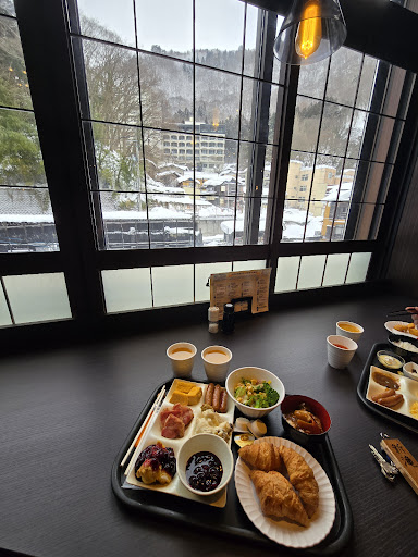Read moreWe had a wonderful stay at Kutsurogijuku Shintaki in February 2025. The road up to the property was quite snowy, and we were a bit concerned in our smaller car, but upon arrival, we found the staff actively attending to the road, directing guests, and ensuring smooth access to ample parking at the top of the hill. The parking lot conveniently connects to the main building, and clear signage (including English translations) guided us to the front desk on the first floor.||The front desk staff were incredibly kind and welcoming, providing assistance with sufficient English. We stayed in Room 11, which was impeccably clean, well-prepared, and thoughtfully designed for comfort. The room featured modern amenities, including separate toilet and shower rooms, a table, bar, and refrigerator stocked with both complimentary (tea, juice, beer) and paid (wine, whisky) drinks. The beds were large and comfortable, complemented by a desk, futon, and smart TV. Leisure clothing was provided for guests, and the bathroom was stocked with high-quality toiletries and personal care products.||One of the highlights of our stay was the private onsen attached to the room. The mineral spring water was clean and refreshing, and the spacious outdoor deck overlooked the river while maintaining privacy behind a lattice screen. It was a fantastic space for hours of relaxing soaking.||Our room also provided access to a VIP lounge, which offered additional complimentary and for-purchase snack and drink options. Throughout the property, we enjoyed various amenities, including a library, ping pong area, and several inviting indoor and outdoor relaxation spaces. The staff worked tirelessly to maintain the rooms, ensure a welcoming environment, and even cleared the snow from our vehicle each morning—a thoughtful and much-appreciated touch.||The meals were another highlight of our experience. Breakfast was an abundant brunch buffet featuring a variety of excellent options, including both traditional Japanese and Western-style dishes. Each night, we enjoyed multi-course dinners showcasing seasonal and local ingredients, with an ever-changing selection of seafood, beef, and other regional delicacies. Every meal was beautifully presented, fresh, and incredibly flavorful, complemented by outstanding service.||As a tall (6'3") and larger (350 lbs) guest, I found the accommodations very comfortable, though I did need to duck in a few places, and the provided leisure clothing did not fit me. Despite this, I thoroughly enjoyed my stay and look forward to returning. One small improvement I would suggest is offering more non-alcoholic beverage options at meals, including sparkling mineral water, which would be a refreshing option between onsen soaks.||While we primarily enjoyed the private onsen in our room, we briefly checked out the public baths, which were well-maintained, with a clearly defined schedule for men's, women's, and private soaking times. The property also has vending machines, including a milk and coffee milk dispenser—another nice touch.||Overall, Kutsurogijuku Shintaki is a truly special place. The property is stunning, the staff is incredibly caring and hardworking, and the location is breathtaking. Our experience here made us fall in love with Japan, and we cannot wait to return.||Highly...