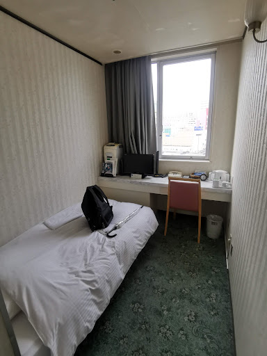 Typical western style hotel in Japan. Good points: quiet, good location, smoking rooms available, free WiFi, comfy bed, room has TV, mini-minifridge, kettle etc. Staff are friendly enough, and speak enough English to get the message across. Breakfast can be included, which is a very tasty Japanese breakfast, in the dining area shared with another hotel, 3 floors down...||'bad' points.. my room has seen better days and could do with being redecorated at least; while tea bags for green tea (2 bags) are provided, there's no English/other tea, and no coffee. I phoned and asked for some coffee, but there's no room service. Ok, I'll come and get it... There's no coffee, except for at breakfast.||Breakfast is ONLY Japanese breakfast, nothing vaguely western (except the coffee). Aircon is about 30 years old, with 4 settings, off, cold, hurricane, arctic storm. ||Bathroom has washlet, sink, shower and bathtub, big enough for at least one 10 year old, or a small Japanese size adult. Any large westerners may not fit. Seriously.||Overall, not bad, not great, ok if you just need somewhere to sleep etc, certainly not a luxury hotel. For the same money, you might find a really nice room in a really...