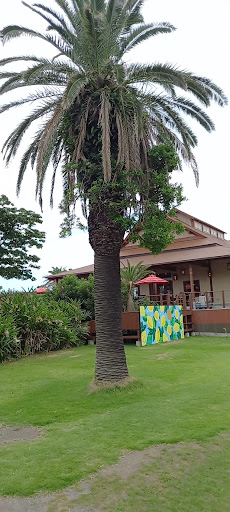 私もヘロヘロでしたがなんとか登れてアジアンガーデン到着しました。幸せの黄色い映えスポットが数カ所作ってあってそれをめぐって楽しむガーデンですね。 宿泊施設もあるようですがまずはレストランで冷たいドリンクいただきました。おしゃれなカフェですね。お料理美味しそうですが上がってくる途中の海鮮料理店でランチ食べようと決めていたので飲み物だけで我慢しました。バーガーとか食べたかったです。カフェメニューがすごく似合うからです。ドリンクもまためちゃくちゃ美味しかったのでもうここでランチでもイイかって思えます。まあでも我慢我慢でなんとか耐えました。笑