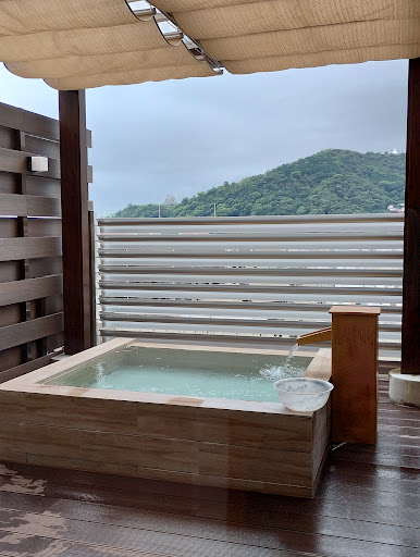 客室:全45部屋の小ぢんまりしたホテルですが、客室はキレイに清掃されていて気持ちがいいです。 露天風呂付客室を予約しましたが大正解! 7階と8階が露天風呂付客室のようですが、今回泊まったのは8階でした。 露天風呂からの眺めは良く、ホテル自体高い場所に有るので、熱海城も熱海の街も一望できます。