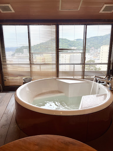 This onsen hotel was an easy 2 minute walk from the JR train station through one of the two and shorter shopping streets. We were welcomed at the door and were brought tea and snacks while they processed our check-in. We were given thorough explanation of the facilities and services at the hotel.||Room was a decent Japanese style room where they will prepare the mattress in the evening when we are having our dinner. It also has a good sea view. The hot spring in the hotel was fabulous which my family thoroughly enjoyed. There was also a couple of massage chairs which helped to relax my muscles after the hot bath. Dinners and breakfasts were of good quality and large quantity. Location was great having the train station and bus terminals within short walking distance. We took the train to the next station to visit the shrine and plum garden. We also took the bus that has a loop route stopping at the major sites.||An excellent experience at a well located and good quality onsen hotel which we...