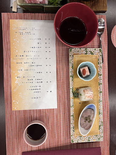 膳菜(前菜) - Appetizer - Aperitivo - 前菜 小袖寿司 (Kosode Sushi) 桜豆腐美味だし (Sakura Tofu) 鴨と新玉ねぎ (Duck with Spring Onion)