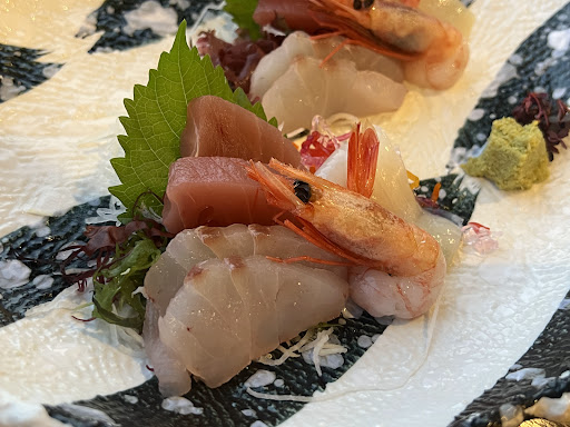 刺身(Sashimi) - Sashimi - Ensalada de Pescado - 生鱼片 鮮魚造り (Fresh Fish Sashimi) 白身重ね (Layered White Fish) 帆立レモン (Scallop with Lemon) 波鳥賊 (Seafood Medley)