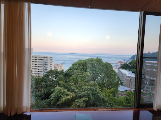 Read moreThis is my favorite retreat for the weekend from Tokyo. Atami is only 40 minutes away from Tokyo by Shinkansen. Taikanso is the authentic Japanese hot spring Ryokan, which was originally the country retreat of a Japanese steel tycoon. It is perched on the hill overlooking the Pacific Ocean and Izu islands. I particularly love the recently introduced suite room, consisted of a separate twin bed room, large Japanese tatami room, living space with comfortable sofa and cutting edge high-tech massage machine, as well as dedicated bathroom with wood bathtub and 100% pure hot spring water. The Japanese bathroom opens up to the wooden balcony with deck chairs. Everything is meticulously maintained and super clean. Bathroom has ample amenities. All rooms have wifi, which works nicely. Taikanso also has three different large public baths, where you can enjoy different atmosphere and scenery. If you have time, the large Japanese garden has flowers of seasons and a Japanese pond with beautiful carps, You can get free fish food from the front desk during the morning time. For dinner, you can enjoy very authentic Japanese course, Sushi course or Japanese top grade beef grill. As this is Japanese ryokan, you change into Japanese Kimono (Yukata) once you arrive and can move anywhere and enjoy dinner in Kimono (Yukata). So relaxing. If you want to relax more, you can arrange aroma massage as well as foot bath and steam bath. By prior arrangement Taikanso is running a shuttle bus from Atami station which is very handy. Hotel staffs are very well trained professionals and they tend to all your needs before you notice. All in all, this is the super weekend Japanese authentic retreat for relax, detox...