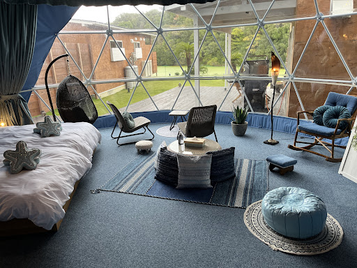 *施設について ドーム型のテントとキッチン、お風呂、トイレがある棟が仕切られたプライベートな区画の中で完全に独立しています。(ウッドデッキで行き来します。) テントから移動する際は一度靴を履き、外に出ることになります。 テントからトイレに行く際は不便です。 お風呂も同様で、お風呂上りに靴を履き外を通りテントに戻ることになります。 雨の日や寒い日は苦労すると思います。 区画が仕切られているとは言え、敷地内には誰でも入れる構造のためセキュリティ面の不安もあると思います。 行き来の移動が前提なので、移動用の履物を準備してくれると良いなと思いました。 (棟の中用の簡易スリッパはありました。) また、海は見えません。ステラ型の方ならみえるかもしれませんが・・・。 アメニティグッズやマシュマロ、お野菜などは管理棟で無料でした。ここは職員が不在の夜中そのままだった気がしますが大丈夫なんでしょうか。管理棟とはいえウッドデッキに屋根があるだけなので動物や鳥も来る可能性はあると思います。