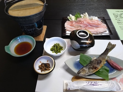 Read more安積野にあるお宿です。|宿の紅葉が真っ赤に色づいていてキレイでした。|部屋は和室二間でした。広い方には布団が敷かれてました。広々した部屋で快適です。|窓の外の紅葉の木が少し緑、黄色、赤とまるで錦絵のようでとてもきれいにでした。朝はBYOしたパックコーヒーを飲みながら、紅葉鑑賞しました。|Wi-Fiは部屋でつかなるとの事でしたが、何回も二人でやってみましたが、繋がらずでした。|お風呂は宿のパンフレットによると、北アルプスから湧き出た天然アルカリ源泉100%温泉との事です。|ぬる湯の露天風呂と、内風呂が2つありました。一つは熱湯です。|お風呂にはボディソープとリンスインシャンプーが置かれてます。|脱衣洗面エリアには、ハンドソープとドライヤーのみがあります。温泉は柔らかいお湯で、温泉が良いせいか、日帰りの方が結構来ていました。|お風呂は朝8:30に掃除に入ると言われ、朝食後にお風呂に入るつれあいは少しがっかりしてました。|夕食は、一部屋二組の部屋でした。|何も聞かず、すき焼きに火をつけられたのはどうもイマイチでしたが、全てがほぼ一気に運ばれたので、仕方ないかと言う感じです。|わさび茎の前菜は辛くて日本酒に合いました。|できたてのお焼きは、蒸したというより焼き立てで、中にネギが入ってました。まんまるのお焼きで焼いたのは初めて食べました。|豚のすき焼きやカルパッチョ、イワナ焼きなど、夕食は全て美味しくいだきました。お酒の種類はあまりなかったのですが、日本酒は冷酒(300cc)が900円とリーズナブルで嬉しかったです(長野県北安曇郡のお酒-大雪渓)。|朝食も同じ部屋でした。味噌汁が美味しく美味しい味噌だなと話しました。またキャラブキやキンピラも手作りでさっぱりとしてました。|宿代は現地払いでした。カード払い不可で、ペイペイ払ができました。|手作り感のある美味しい食事と...