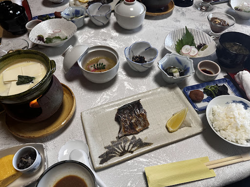 Japanese restaurants from around the world should come to see how traditional Japanese dinner meal set (Kaiseki) should be. When you go travel around each ryokan throughout Japan, you might face the old dishes again and again, but not at here. For example, Gratin with crab white sauce and sweet pear that getting along well with scallop and autumn-maple-leaf-shaped biscuit decoration, or the pumpkin soup that made the pumpkin-haters as me say it was so completely delicious. How the superb fusion creativity of Japanese food they are!||My impression started from the check-in green tea, that the little salty made that welcome tea so delicious that what I have ever had before. (Not to mention that they would give you two kinds of tea-leave blends in your house (Yes, I stayed in the standalone house with personal outdoor onsen behind to prevent cold sickness during cloth changing. That sweet house has beautiful view of small dam (with waterfall) and forest beside, so you could hear the water-running sound all day and night especially during onsen session.)||The Kaiseki came with Japanese-English menu list so you could understand all dishes easily. For me, they arranged dinner and breakfast directly at my room. And what was special and different from other ryokan was they consequently served you many dishes (with many beautiful tableware, not just in one bento box as some ryokan), on the big table, and gave you the time as much as you like to gradually take photos (of course!) and eat. When you have them enough, just phone call to the reception to let them come and clean for you.||Even the breakfast was superb, not just light common meal as others. Their creativity still there as well such as the tofu with soy milk soup in nabe style that is so good for your health. And especially the orange tea (I cannot remember what they called) that was served after the breakfast was so so refreshing and delicious.||Let me conclude, if you would like to choose the onsen ryokan best on their Kaiseki specialty, choose here. Not to say their other advantages such as the location that is just right beside the famous theme park/zoo on the hill, Rakutenchi (so of course, the bus stop was right there.), and rather near the Beppu train station in my opinion (just 869 yen taxi ride), the Beppu onsen water that is the second best of the world after the Yellowstone (if I could remember), and super hyper and happy service that come to help bringing your luggage since the front of their gate (I think they monitored via CCTV) I guess during the autumn peak period ( I went there on Dec 5-7th so some red maple trees had been fallen, but there were some trees were still red beautiful as well), the garden around the ryokan that was full of maple trees would be so perfectly beautiful.||Please note that the changing area for onsen (both personal and public onsen) was outdoor as well so you may have to face with super cold wind with your bare skin a little, not to mention the other areas of the house such as the toilet and bathroom that the main heater is not cover to. But the thing I love in the house was the perfect electrical warming carpet that made me love to sit or sleep there all...