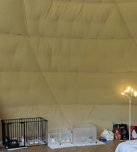 Read more8月上旬に3匹の犬を連れて宿泊いたしました。 部屋はとても広くてきれいで、子供も大喜びでした!宿泊前はこちらの口コミ投稿をみて何点か不安がありましたが、マイナスな事を書かれている面は改善されていて、私のなかでは大満足! そもそも、グランピングはキャンプを気軽に楽しめる施設だと私は思っています。虫がいるのは当たり前だし、食事するスペースは外に繋がってる場所なのでそれなりに暑いですし虫もはいってきたりします。それは仕方ないこと!殺虫剤、コンセントタイプ虫除けも準備されてます。真夏なので食事するスペースは外と同じような環境なので暑いです。テントにある扇風機を設置すると良いです(^-^) 虫苦手な一家ですが、自然を感じれてよかったです! スタッフの手伝いは最小限で、 あとは自分たちでがんばって準備をするのがステキです! インドアの私にとってはありがたい経験でした!あらゆるサービス、環境を求める方はグランピングではなくホテルに宿泊した方がいいですよ(^^) 真夏に宿泊と言うことで、ビニール製テントが気温上旬させるのではないかと心配でしたが、クーラー2台ついていて、寒いくらい快適でした! 温泉はいつでもはいれます! 洗面所にはクーラーがついているので、涼しくすごせました! 食事について。BBQするスペースには 冷凍冷蔵庫・電子レンジ・ケトル。 たくさん食事したい我が家は、食事付きプランでしたが、 お肉や野菜を持ち込みしました!お皿などぜったい足りないとおもったので紙皿、電子レンジ対応パック、キッチンペーパー、調味料などなどばっちり準備していったので、焼きすぎたお肉等はパックにいれ夜中に温めてたべました! 持ち込み料金も発生しなかったので、食事が足りないかもと思われる方は事前に準備されるといいかなとおもいます! 使い終わった食器などは玄関そとにあるケースに直すと夜スタッフが回収してくださります。グランピングなので、使い終わった食器などをみんなでお片付けできるのもキャンプの楽しみ(^-^)普段手伝わない我が子もしっかり手伝ってくれたのでよかったです!
