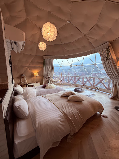 Dome room was very spacious - room to have kids run around or place luggage. We had a balcony that overlooked the city and had a nice bench to enjoy coffee. Surprisingly - no bugs!
