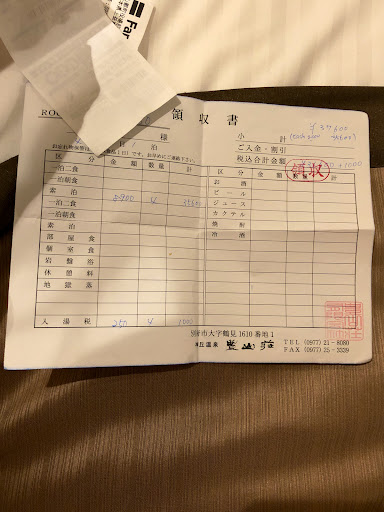ONSEN review: entrance ¥400 for the public onsen, ¥1300 for the private for 2 people 1 hour. Shampoos provided, you need to bring your own towel. Beppu onsen stamp at the reception. Operating hours for non guests 10:00 - 15:00.