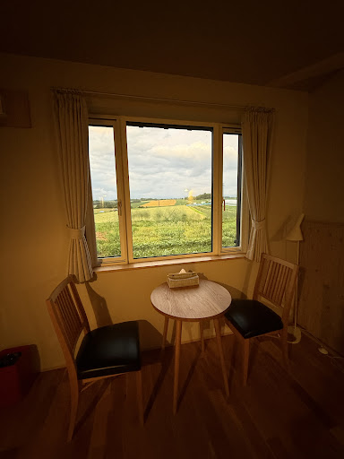Excellent stay, spotlessly clean, so quiet. This little bnb was quite the experience for me. It is run by a nice couple. It really is in the middle of fields, so it is very dark at night with no street lights. A car is definitely needed to be in this area. My visit was during the summer at the start of July. When I arrived just past 19:30, I hadn't eaten dinner. It was hard to find a restaurant that was open in the downtown area, which is maybe a 5-minute drive away. The owner was so kind to recommend something on the map for me. It was also too cloudy to stargaze; I was very sad about that.