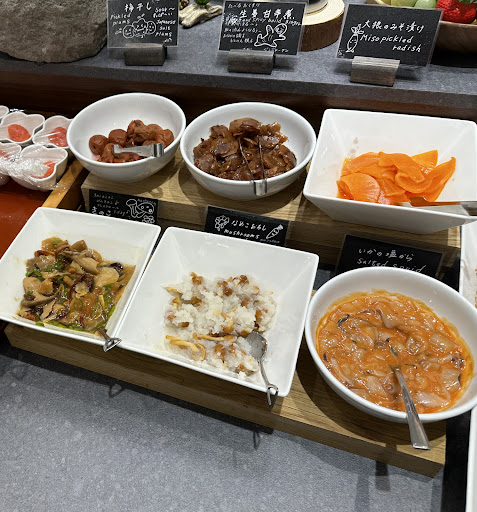 Food is good and very filling for the kaiseki-style dinner. I recommend the 5:30pm seating if you don't want to feel rushed to catch the 7:30 lake shuttle. Breakfast is a bit crazier though, as it's self-serve in a single room, so lots of slippers are left overflowing out front, and people leaving to go find seats in other rooms. Also, we chose the 8:30-9:30 breakfast slot, but despite arriving at 845 they already ran out of three of the main entrees and did not replace them ever.