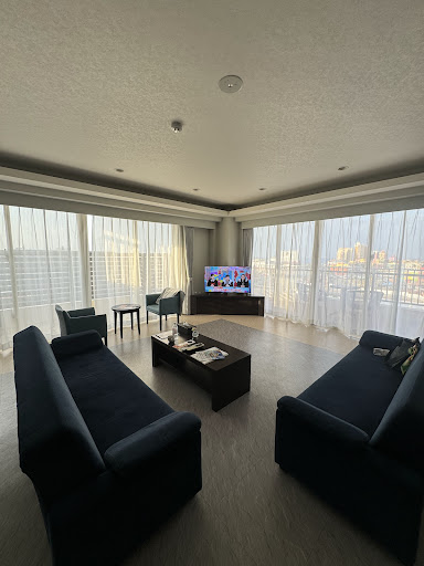 Read moreThis is an excellent hotel. The service, especially from Mizuki, was exceptional but all the staff were really good it's just that Mizuki stood out as the best. The rooms are huge and the balconies are spacious. Bathroom is very spacious and well set up and they have two air-conditioners, one for the living room and one for the bedroom. But it is much cheaper than the 5-star hotels next to the beach like the Hilton, The Vessel and LeQu for a reason. It is a 600 metre walk to the beach. You can do this in 15 mins but its's hard work in the middle of Summer when it is 35 degrees celsius. It is next to a major road and the traffic noise can be bad until about 1am because there are local hoons on motor bike and hotted-up cars which make a lot of noise (it's part of the local culture for young guys to show off their hotted-up cars at the combinis). It is also strange to have two king singles rather than one king bed in the bedroom but that is a bit of a Japanese thing. I had to do some work on my laptop but they don;t have a study desk so I had to crouch over the laptop on the coffee table so tat would be an improvement. But otherwise, it is much cheaper than the 5-star hotels along the beach and it is very comfortable (despite the traffic noise) and the staff...