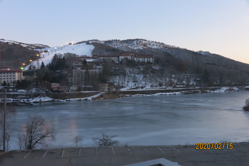 10畳+広縁の広々として落ち着いたお部屋からは白樺湖が目前に広がり、「絶景!」と言っていい素晴らしい眺め。 蓼科の山々、スキーゲレンデ、白樺湖が一望の抜群の景観。凍った白樺湖面に映るゲレンデ夜景も素敵。 ただし、「ホテルエミナンス(廃墟)」が若干視界を遮りました。