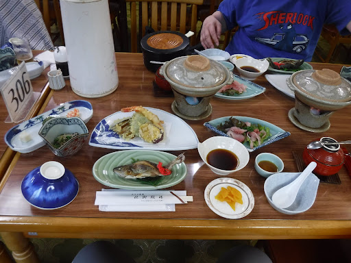 We stayed here for one night before we climbed Mt.Yokodake on April 1st.||||This accommodation locates deep in the mountains, so we had to keep driving up on snowy road. Our 2WD car has snow tires on, but could not go up the steep snowy hill 700m before the accommodation. The car slipped, and we got stuck... Fortunately my docomo cellphone worked (Softbank didn't), and accommodation staff came to help. We left the car 800m away from the place, and got on their car. If you have 2WD car, you may need chains as well as snow tires. ||||The place was very big, but only 3 groups were staying on that day. ||The room was quite simple. ||There were Yukata (Japanese traditional PJ), toothbrush, and small towel for onsen (hotspring), but no hair drier.||||Their famous Onsen (hotspring), including the bath tab and floor, is made by woods.||It was a very nice and unique Onsen, but they don't have any heaters in the changing room or washing space. ||So your body gets cold fast once you get out from the Onsen. ||(Not only the onsen area, but entire building was not heated. They heats rooms in use only. I don't complain since it would cost A LOT if they use central heating system in such big building especially when only 3 groups are staying.)||||Their food was average (Tempura, Nabe, river fish, etc.) but plenty.||||This place is more like a hut with Onsen and TV...