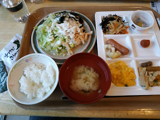Read more朝食→種類少なめでウインナー、スクランブルエッグ、卵焼き、お茶漬けなどあり。お茶漬けはお茶漬けの出汁が濃いめだから少なめにすることをオススメします。 パンもあって、小さめの食パンにスクランブルエッグをのせて食べると凄く美味しい。朝はヨーグルトとフルーツポンチあったけど、ヨーグルトは酸っぱい(コンフレークいれるといい)
