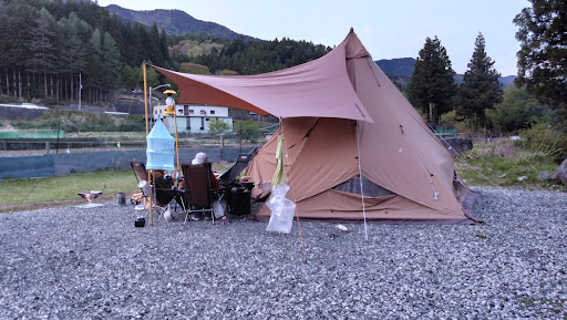 Read more大雨の中のキャンプでしたが、サイトが砂利のため水はけもよく、風も無かったのでタープ下で気持ちよく過ごせました。 30区画程度のこじんまりとしたキャンプ場で、川沿いは60㎡くらいのサイトが並んでいていて、電源が付いているサイトもありました。 私たちが利用させてもらった12番サイトは一番奥にあるので人が通らず、また広いサイトなのでレイアウトも自由に組むことが出来て、とても気に入りました。 予約が電話なのが面倒ですが、どんな環境でキャンプがしたいのか聞いてくれて、おすすめのサイトを予約してくれました。 ほぼ男性客で中年層多め、ソロ、ソログル、デュオが占めていて、生憎の天気でもほぼ満サイト。 マナーのよいキャンパーが多かったです。 お気に入りのキャンプ場...