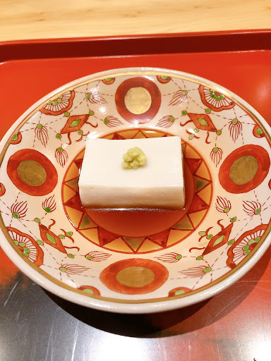 【食前のバー「刻」】 食事処の隣にあるバー「刻」では、食前酒を楽しめます。ノンアルコールの選択肢もあり、お酒が苦手な方や妊婦でも安心。 私は葛茶を、夫はノンアルコールのレモンサワーをいただきましたが、どちらも美味しかったです。 御影石でできた美しいカウンターにも感動しました。