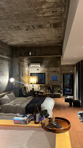 Read moreFirst of all the design of this hotel is amazing , a retro bunker styled with raw walls and a beautifully built lounge. Secondly the service was amazing , we were checked in by a younger man who is still practicing his English, but he does it very well and puts alot of effort into being very helpfull. We understood everything he said and we even got a complimentery lemonade when checking in. The room itself is very spacious and the amenity kit in the bathroom is very nice aswel , I've only just checked in everythings topped of my list here . There is a kettle in the lounge together with other amenities for people who need it😉. And again thanks to the staff who helped us with checking in and carrying our luggage...