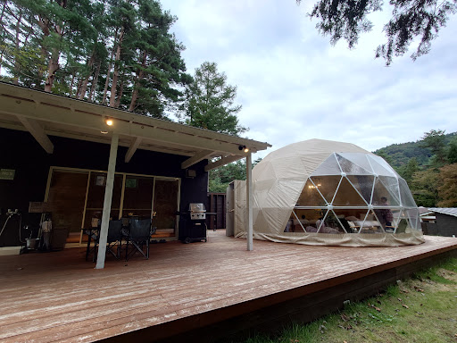 Read more初めてのグランピングなので他と比較はできませんが、ドッグファーストだけあって犬へのサービス満点です。室内でも犬が自由に過ごせるのは嬉しいですね。特にうちは大型なので、のびのびとさせることが出来て嬉しいです。犬用の料理もレパートリー豊富でセレクト制でした。ごはんを出した時にキラキラした顔で見ていたので満足してくれたと思います。 施設自体が新設なのでキレイです。テントの中も広くてエアコン完備なので快適でした。ただし、トイレやお風呂は隣接コテージになるので少々不便さはあります。まぁ、これは仕方がないですね。各種アメニティも揃っていて、バスソルトもあったのは嬉しかったです。 施設は湖畔を眺めながら…というよりかは大自然の中で川のせせらぎを聴きながら過ごせる場所です。TVは設置されていませんが、外で焚き火(有料)もできるのでゆっくりと時の流れを楽しめます。あいにく天気が曇りだったので星空は見られませんでしたが、晴れていたらもっとキレイだったんだろうと思います。 料理は最初少なそうと思ってしまいましたが、実際はけっこうボリュームがありました。女性3人で3人前を取りましたが、けっこう頑張って食べて少し残すくらいです。男性がいるとちょうどいい、もしくは持参でBBQ可なので何か持って行くといいかも知れません。どれも美味しい料理でしたが、地元の肉を使用した牛ステーキは絶品でした。飲み物は別料金でビールと赤ワインが注文でき、それ以外は駐車場の自販機を利用する形です。湖畔の方まで出ればコンビニや道の駅などもあり、それ程距離がある訳でもないのでちょっとした買い足しにも便利です。 1泊でしたが、とても...
