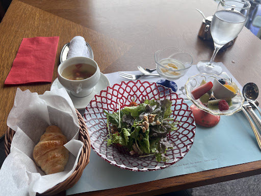 Breakfast: Our rate came with breakfast which was varied and plentiful. It is served a la carte and consisted of coffee/tea, juices, yoghurt, salad, eggs, bacon, potatoes (hash brown or tater tots), bread and pastries. The service was reliably great, all with great views of Fuji.
